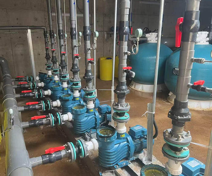 作為泳池水處理設備的重要組成部分,該泳池項目的泳池水泵采用的AQUA愛克循環水泵。這款泳池水泵具有高效、穩定、耐用的特點,能夠為泳池提供充足的循環水量,確保泳池的水質和水量穩定。