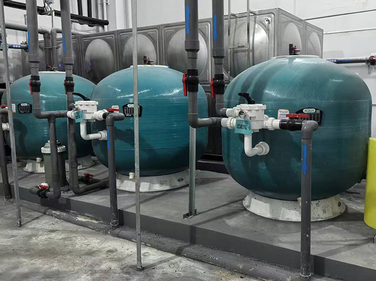 AQUA愛克過濾砂缸選用天然石英砂作為過濾介質,高效去除水中的懸浮物、雜質及微生物。同時,該過濾砂缸具備防腐蝕和防滲漏特性,并設有反沖洗功能,維護簡便,確保該小區泳池水質始終保持清澈透明。