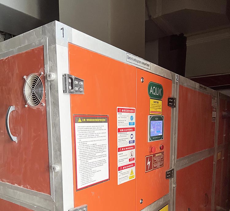 同時,AQUA愛克三集一體恒溫除濕熱泵則集成除濕、恒溫、池水加熱、熱能回收、新風處理五大功能,不僅能利用空氣中的免費熱能,還可以回收池水蒸發而散失的大量“潛熱”,實現“除濕不耗能、供熱更節能”的雙重效益,有效維持室內濕度平衡,規避傳統泳池常見的悶熱、結露問題,真正幫助山東煙臺某私立學校游泳池實現降本增效。