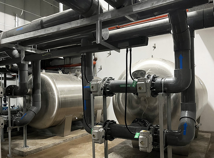 在過濾環節,AQUA 愛克不銹鋼過濾砂缸成為該游泳館的“守護者”。這種砂缸采用優質不銹鋼材質,具有優異的耐腐蝕性和耐用性,能夠經受住嚴峻的機房環境。其選用天然石英砂作為過濾介質,能夠有效攔截泳池水中的細小顆粒、灰塵、細菌等雜質,經過過濾后的水體更加純凈,為游泳者提供了健康安全的保障。同時,該砂缸的反沖洗功能設計合理,操作簡便,能夠輕松恢復過濾效果,延長設備使用壽命,確保泳池水質的長期穩定。