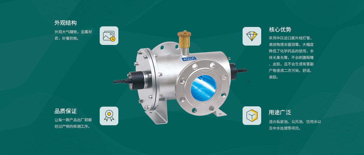 AQUA愛克泳池設備旗下的MUV中壓紫外線殺菌器采用原裝進口燈管,品質有保障。