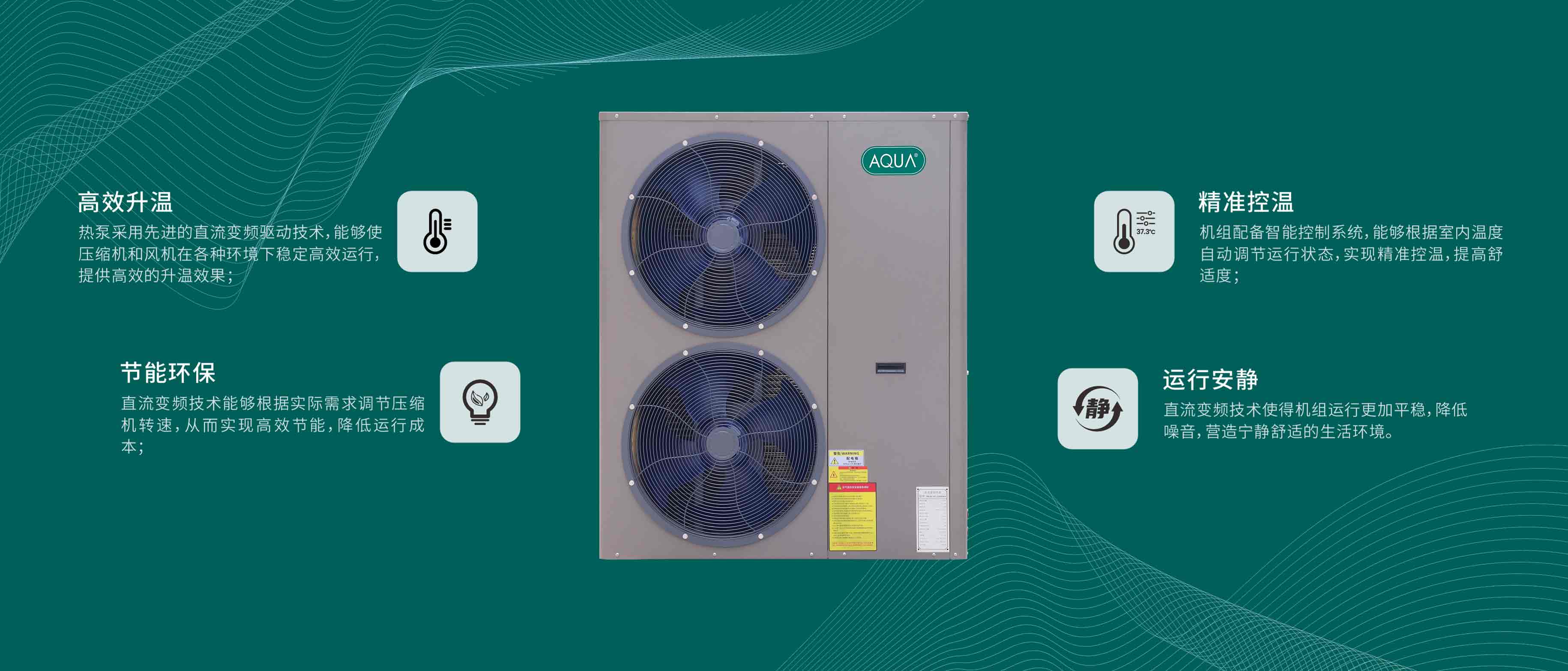 AQUA愛克側出風變頻熱泵采用先進的直流變頻驅動技術,能夠使壓縮機和風機在各種環境下穩定高效運行,提供高效的升溫效果;直流變頻技術能夠根據實際需求調節壓縮機轉速,從而實現高效節能,降低運行成本;機組配備智能控制系統,能夠根據室內溫度自動調節運行狀態,實現精準控溫,提高舒適度;直流變頻技術使得機組運行更加平穩,降低噪音,營造寧靜舒適的生活環境。適用于各種住宅、別墅、度假村、商用場所等,滿足不同熱泵升溫的需求。