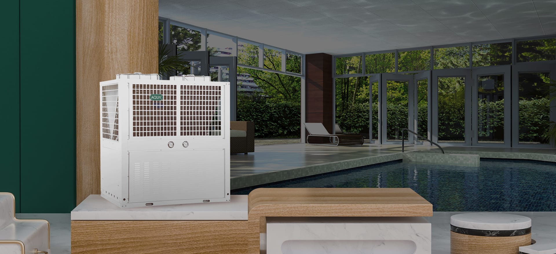 AQUA愛克泳池設備旗下的恒溫熱泵分為常溫型和低溫型。熱泵是一種從低溫熱源吸取熱量,使其在較高溫度下轉換為可以利用能源的裝置。
