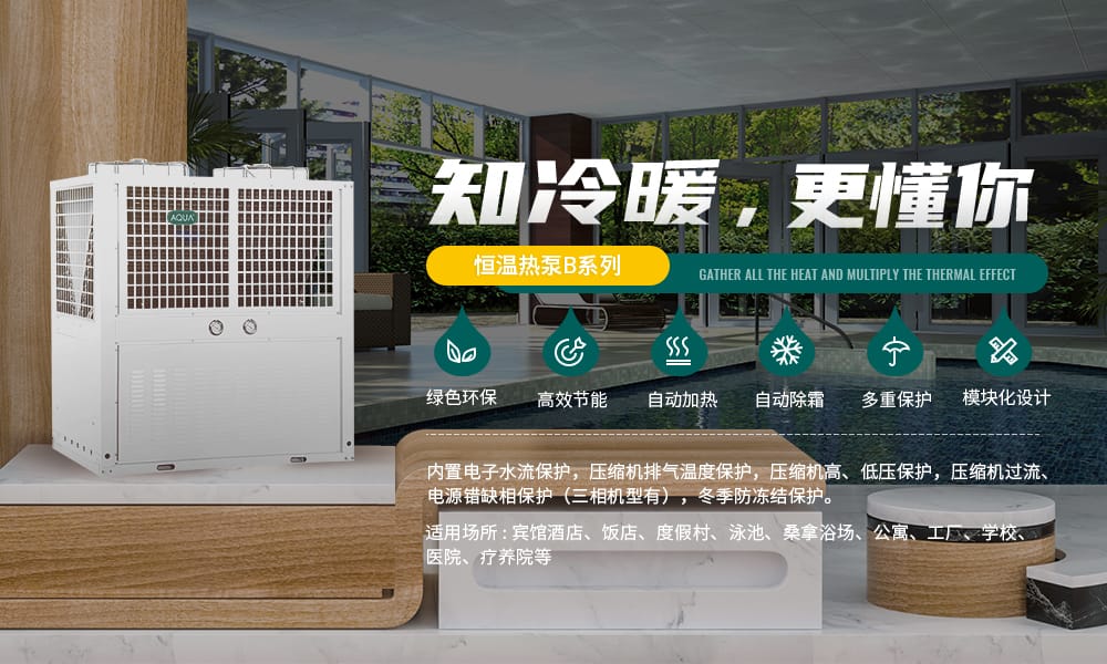 外觀優雅、大氣,抗老化、耐腐蝕。全天候可靠工作。空氣源熱泵是一種從低溫熱源吸取熱量,使其在較高溫度下轉換為可利用能源的高效率的環保節能型產品。AQUA愛克空氣源恒溫熱泵分為常溫和低溫兩種不同型號。