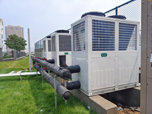 秀峰路某小學采用的AQUA愛克空氣能恒溫熱泵,是當下主流的空氣能設備。