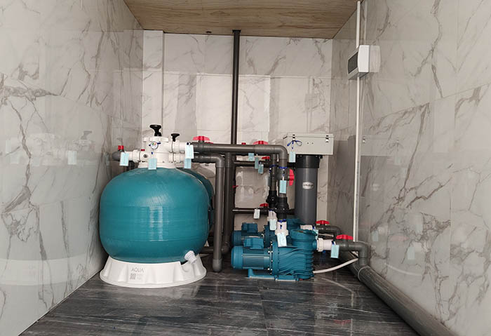 據悉,該泳池的循環過濾消毒系統主要由知名泳池設備品牌AQUA愛克提供。具體由AQUA愛克泳池水泵、泳池過濾砂缸、汞齊紫外線殺菌器三款泳池設備構成,幫助業主實現泳池泳池水處理、循環過濾、消毒殺菌等目的。