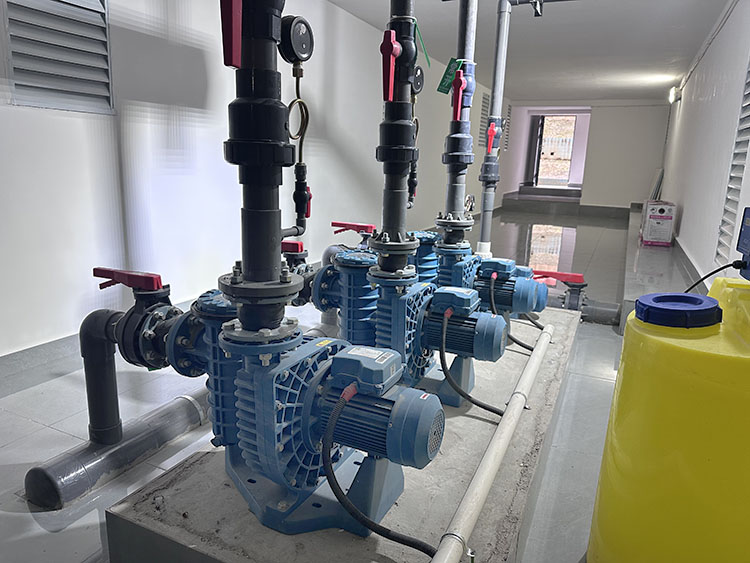 接下來,我們以貴州某會所室內泳池項目為例,來充分展現(xiàn)AQUA愛克泳池設備的性能優(yōu)勢。該會所室內泳池安裝了AQUA愛克泳池循環(huán)水泵、過濾砂缸、投藥泵、水質監(jiān)控儀、泳池恒溫熱泵等泳池水處理設備。這批泳池循環(huán)過濾設備、空氣源熱泵、泳池消毒監(jiān)控設備進駐之后,始終穩(wěn)定高效運行,全面保證了室內泳池水質干凈清澈、水溫與室溫舒適恒溫。